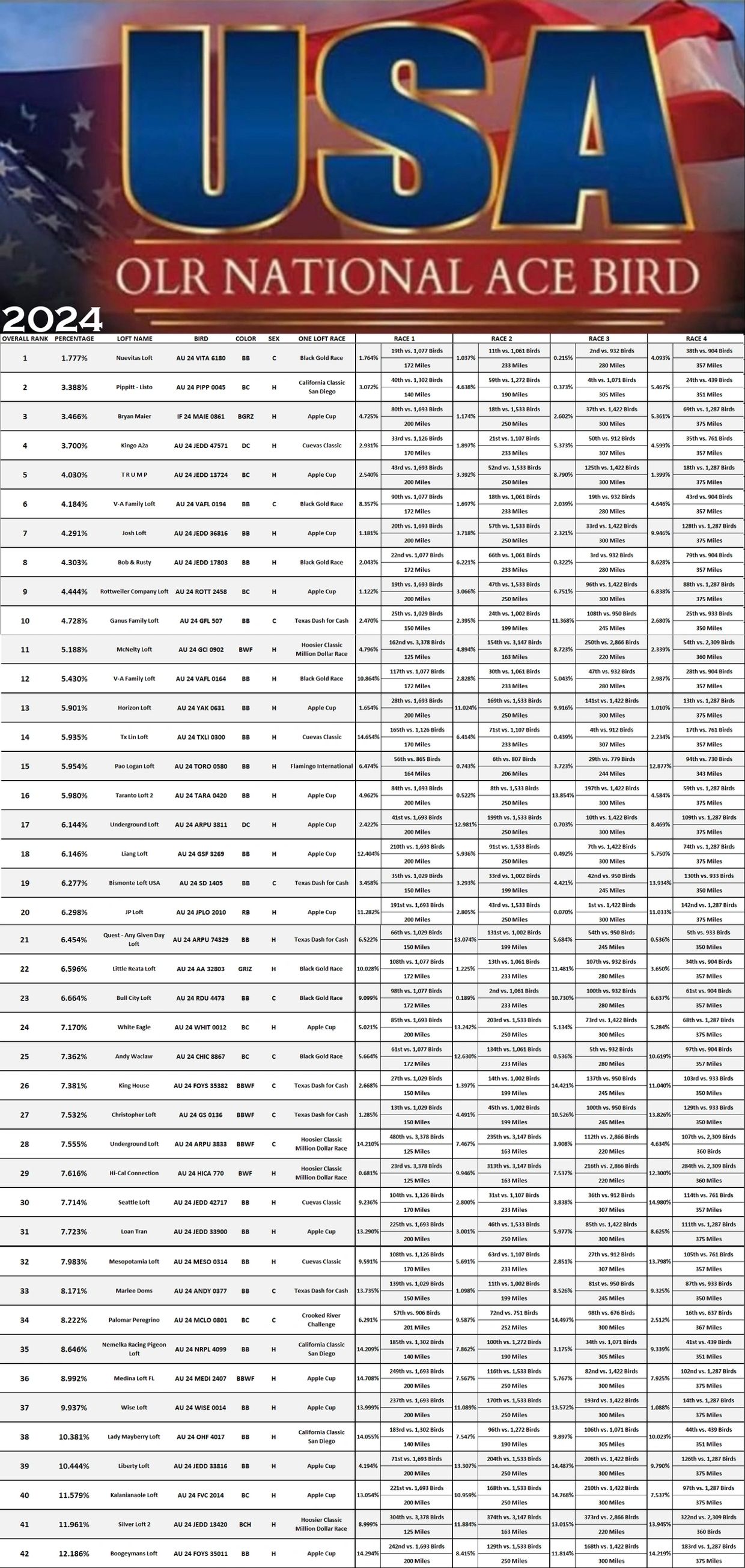 2024 USA OLR Champion Bird List